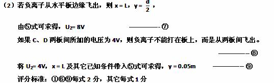 (2)如果C、D两板间所加的电压为4V,则负离子还能打在板上吗?若不能打在板上,它离开电场时发生的侧移为多少?