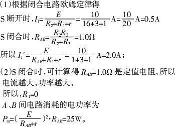 (2)为了使A、B之间电路的电功率在开关S接通时能达到最大值,则R1=________,此时A、B间电路消耗的电功率Pm=________.