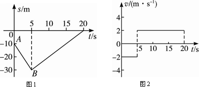在距离斜坡底端10 m的山坡上,一辆小车以4 m/s的速度匀速向上行驶5 s后,又以2 m/s的速度匀速向下倒退,设位移和运动方向都以沿斜坡向下为正方向,试作出小车20 s内的位移图象和速度图象,由图象再确定小车在20 s末的位置.