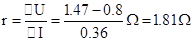 (2)由闭合电路欧姆定律U=E-Ir得知,当I=0时,U=E,U-I图象斜率的绝对值等于电源的内阻,则将图线延长,交于纵轴,纵截距即为电动势E=1.47V,