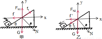 对斜面体B进行受力分析,物体A向上滑动时,B受力如图甲所示,物体A向下滑动时,斜面体受力如图乙所示;