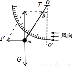 解答:解:对小球受力分析,受到重力、拉力和风力,将拉力和风力合成,合力与重力平衡,如图