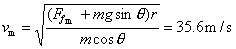 (2)若将场地建成外高内低的圆形,且倾角为30°,并假设车轮和地面之间的最大静摩擦力不变,为保证赛车的行驶安全,赛车最大行驶速度应为多大?