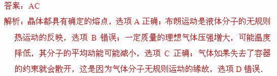 D.气体如果失去了容器的约束就会散开,这是因为气体分子间斥力大于引力的缘故