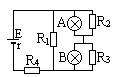 如图所示灯泡A、B都能正常发光,后来由于电路中某个电阻发生断路,致使灯泡A比原来亮一些,B比原来暗一些,则断路的电阻是: