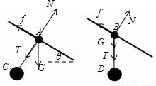解答:解:A、C假设A环与杆间的摩擦力为f,对A环受力分析:重力、拉力、支持力,假设A环受到沿杆向上的摩擦力f,如图,