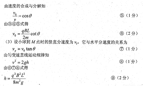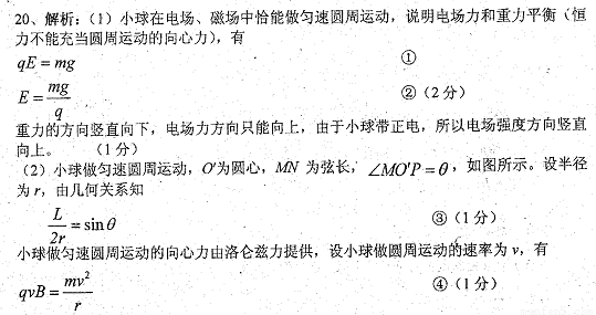 如图所示,直角坐标系xOy位于竖直平面内,在水平的x轴下方存在匀强磁场和匀强电场,磁场的磁感应为B,方向垂直xOy平瑶向里,电场线平行于y轴。一质量为m.电荷量为q的带正电的小球,从y轴上的A点水平向右抛出,经x轴上的M点进入电场和磁场,恰能做匀速圆周运动,从x轴上的N点第一次离开电场和磁场,MN之间的距离为L,小球过M点时的速度方向与x轴的方向夹角为