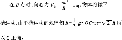 R,其上方有一个曲线轨道AB,轨道底端水平并与半圆柱体顶端相切.质量为m的小球沿轨道滑至底端(也就是半圆柱体的顶端)B点时的速度大小为A.