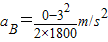 解答:解:令A车的加速度为a,则根据题意B车初速度为30m/s,刹车1800m才能停下,根据匀变速直线运动的规律可以求出B车刹车时的加速度