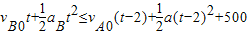 【答案】分析:求出B车减速的加速度,A车做匀加速运动,B车做匀减速直线运动,抓住两车速度相等时B车的位移要小于等于A车的位移+两车的距离,列式求出B车的加速度即可.