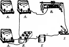 E£¬µç¶¯ÊÆÔ¼10 V£¬ÄÚ×èÔ¼1 ¦¸£»µçÁ÷±íA1£¬Á¿³Ì10 A£¬ÄÚ×èr1ԼΪ0.2 ¦¸£»µçÁ÷±íA2£¬Á¿³Ì300 mA£¬ÄÚ×èr2ԼΪ5 ¦¸£»µçÁ÷±íA3£¬Á¿³Ì250 mA£¬ÄÚ×èr3ԼΪ5 ¦¸£»µç×èÏäR1£¬×î´ó×èÖµ999.9 ¦¸£¬×èÖµ×îС¸Ä±äÁ¿Îª0.1 ¦¸£»»¬Ïß±ä×èÆ÷R2£¬×î´ó×èÖµ100 ¦¸£»¿ª¹ØS£»µ¼ÏßÈô¸É£®ÒªÇóÓÃͼ