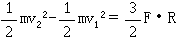 如图所示, 质量为m的物体被用细绳牵引着在光滑水平面上做匀速圆周运动. 当拉力为F时转动半径为R. 当外力增大到8F时, 物体仍做匀速圆周运动, 其转动半径为R/2. 在此过程中外力对物体所做的功为[ ]
