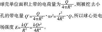 如图所示,一半径为R的绝缘球壳均匀地带有+Q的电荷.球心O处电场强度为零.现在球壳上挖去半径为r(r