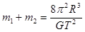 两个星球组成双星,它们在相互之间的万有引力作用下,绕连线上某点做周期相同的匀速圆周运动,现测得两星中心距离为R,其运动周期为T,求两星的总质量。