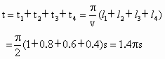 小球开始在水平面上做匀速圆周运动,当绳碰到 B后,小球做匀速圆周运动的半径减小,由于小球在切线方向不受力,因此小球的线速度不变.根据小球做匀速圆周运动时,由于 A、B钉子的存在,小球的运动半径不断减小,但小球做圆周运动的线速度大小不变,仍然做圆周运动,认识到这一点是解答本题的关键.另外本题运用逆推的方法,求出小球运动所需的时间,这种运用数学方法处理物理问题的能力也是高考要求的能力之一,必须具备. |