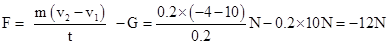 ,即地面对小球的作用力的大小为12N,方向与正方向相反竖直向上.