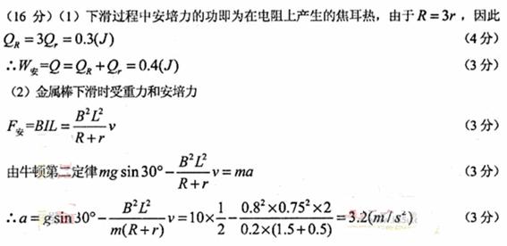 (2013·天津和平一模,10题)(16分)电阻可忽略的光滑平行金属导轨,两导轨间距L=0.75 m,导轨倾角为30o,导轨上端ab接一阻值R=1.5