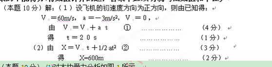 (10分)飞机着陆后匀减速滑行,它滑行的初速度是60m/s,加速度大小是3m/s2,则:(1)飞机着陆后滑行的时间是多少?(2)要滑行多远才能停下来?