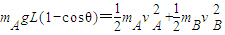 即当cosθ=(2-2cosθ)时,vB最大,亦即此时A球机械能最小,所以