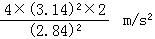 在某地测重力加速度时, 用一个摆长为2m的单摆, 摆动过程中, 测得100次全振动所用的时间是4min44s, 这个地方的重力加速度值为_____m/s2. (保留2位小数)