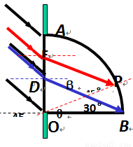 设射到D点的光线刚好折射到B点sinβ=0.5,β=30 °
