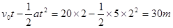 解析试题分析:由v=at可知汽车减速4s速度减小为零,所以刹车后6s通过的位移为