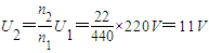 【答案】分析:根据理想变压器原副线圈匝数比等于电压比即可求解.