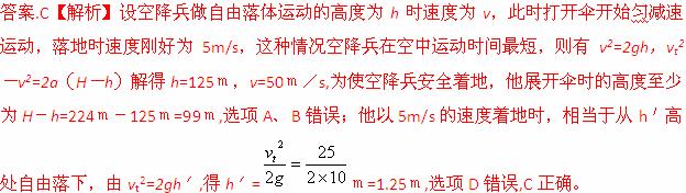 D.空降兵展开伞时离地面高度至少为99m ,相当于从2.5m高处自由落下