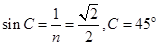 当光从玻璃射向空气入射角为45°时,刚好能发生全反射,