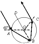 解:作出光线在玻璃球体内光路图,A、C是折射点,B反射点,OD平行于入射光线,由几何知识得,∠AOD=∠COD=60°,则∠OAB=30°