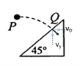 如图所示,一物体自P点以初速度l0m/s做平抛运动,恰好垂直打到倾角为45°的斜面上的Q点(g=10m/s2)。则PQ两点间的距离为 ( )![]()