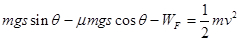 过程中,重力做正功,摩擦力和安培力都做负功,所以有: