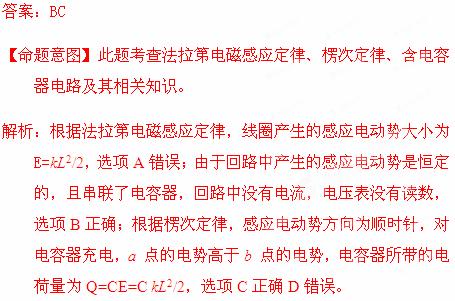 (2013广东汕头市期末)如图,正方形线框的边长为L,电容器的电容量为C.正方形线框的一半放在垂直纸面向里的匀强磁场中,当磁场以k 的变化率均匀减弱时,则