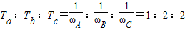 根据v=ωr,由于ωB=ωC,故vB:vC=rB:rC=2:1;