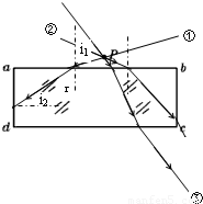 解:A、作出从ad面一侧射出的光线如图①,当入射角i1接近90°时,折射角r最大,r的最大值约为:sinr=