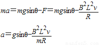 (2)在加速下滑过程中,当ab杆的速度大小为v 时,求此时ab杆中的电流及其加速度的大小;