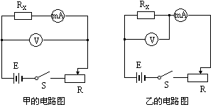 甲、乙两同学使用完全相同的器材用伏安法测量同一未知电阻Rx的阻值.给定器材为:待测电阻Rx;电流表