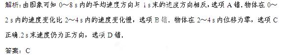 A.物体在0~8 s内的平均速度方向与1 s末的速度方向相同