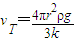 解答:解:雨滴下落时受两个力作用:重力,方向向下;空气阻力,方向向上,当雨滴达到终极速度vT后,加速度为零,二力平衡,用m表示雨滴质量,有