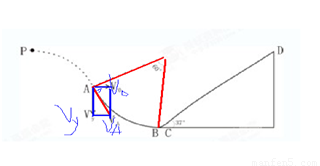试题分析:P点平抛运动经过A点,运动分解为水平方向和竖直方向,速度分解如图