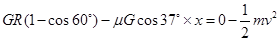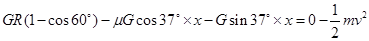 最终只能回到B点,速度0.在斜面上过程不管向上滑行还是向下滑行,摩擦力都是负功,而且摩擦力大小不变,假设斜面上滑行总路程为X,则有摩擦力做功![]()