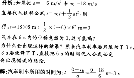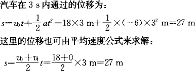 由于汽车在后3 s内处于静止状态,所以汽车在6 s内通过的位移和在3 s内通过的位移相等,均为27 m,事实上,汽车在大于3 s的任意时间内通过的位移都是27 m. |