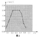 答案:根据题目要求。把各段时间的平均速度当做这段时间中间时刻的瞬时速度,可算出一系列时刻的速度,见下表。根据表中数据在v-t图上描点画出图象,如图5所示。由图象可以看出,卷帘窗开始做匀加速直线运动,中间有一段作匀速运动,然后作加速度变化的运动。AD段的加速度可由v-t图对应段的斜率确定,为5m/s2。AK段的平均速度可根据表中数据由公式算出,为1.39m/s。