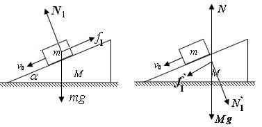 。斜劈受到的力有,重力,支持力,m对它的压力,还有m对它的摩擦力,由于竖直方向平衡,只用分析水平方向投影 即左边