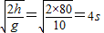 (2)根据v=gt即可求得砖头砸到车上时的速度.