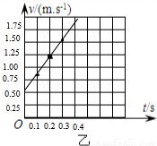 ②在乙图所示的坐标系中,作出小车运动的v-t图象,由图线可分析出小车的运动状态为 .
