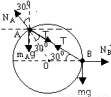 一光滑圆环固定在竖直平面内,环上套着两个小球A和B(中央有孔),A、B间由细绳连接着,它们处于如图中所示位置时恰好都能保持静止状态.此情况下,B球与环中心O处于同一水平面上,AB间的细绳呈伸直状态,与水平线成30夹角.已知B球的质量为m,求:(1)细绳对B球的拉力和A球的质量;