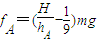 为了研究鱼所受水的阻力与其形状的关系,小明同学用石蜡做成两条质量均为m、形状不同的“A鱼”和“B鱼”,如图所示.在高出水面H处分别静止释放“A鱼”和“B鱼”,“A鱼”竖直下潜hA后速度减小为零,“B鱼”竖直下潜hB后速度减小为零.“鱼”在水中运动时,除受重力外,还受到浮力和水的阻力.已知“鱼”在水中所受浮力是其重力的(1)“A鱼”入水瞬间的速度VA