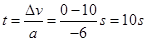 【解析】(1)以初速度方向为正方向,则有a= -6m/s2