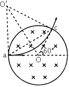 如图如示,分布在半径为r的圆形区域内的匀强磁场,磁感应强度为B,方向垂直纸面向里,电荷量为q、质量为m的带正电的粒子从磁场边缘a点沿圆的半径aO方向射入磁场,离开磁场时速度方向偏转了60°角.试确定: